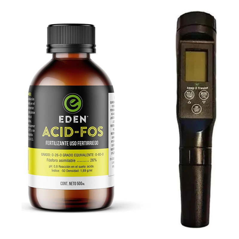 Producto: Reductor de pH Eden Acid-Fos 60cc con medidor de pH Keep it Fresh bluetooth.