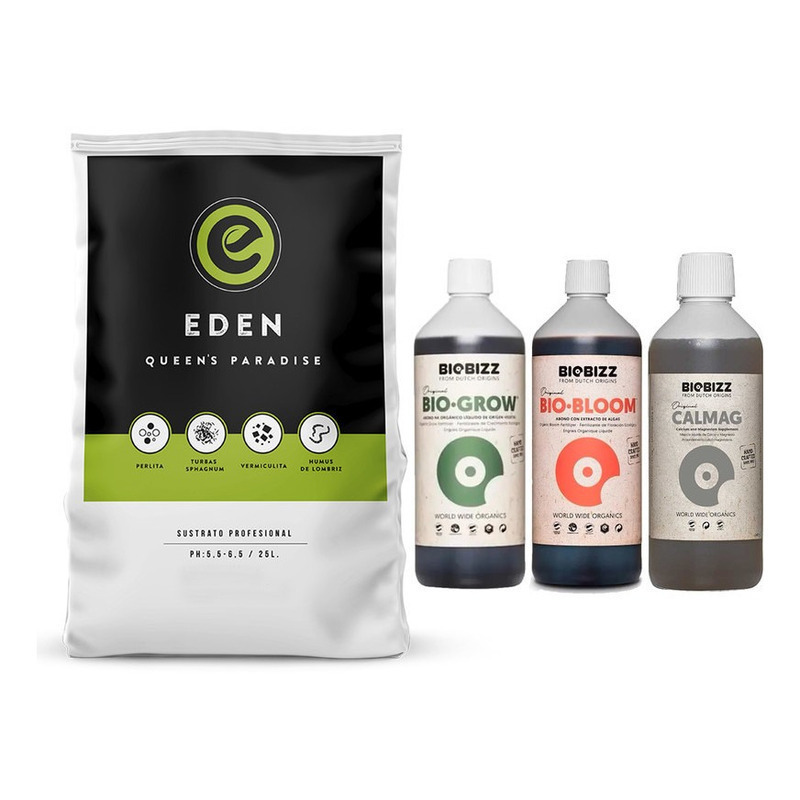 Producto: Sustrato Eden 25lts con Biobizz Bio-Grow, Bio-Bloom y Calmag 1lt.